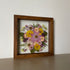 Květinový ručně vyrobený obraz s květy v růžových a fialových barvách, které rostou ze středu obrazu. Mezi květy najdete krásenky, růže a mnoho dalšího.