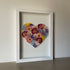 Květinový ručně vyrobený obraz s květy v červených, modrých a žlutých barvách, které rostou ze středu obrazu ve tvaru srdce. Mezi květy najdete ostrožky, chryzantémy, růže a mnoho dalšího.