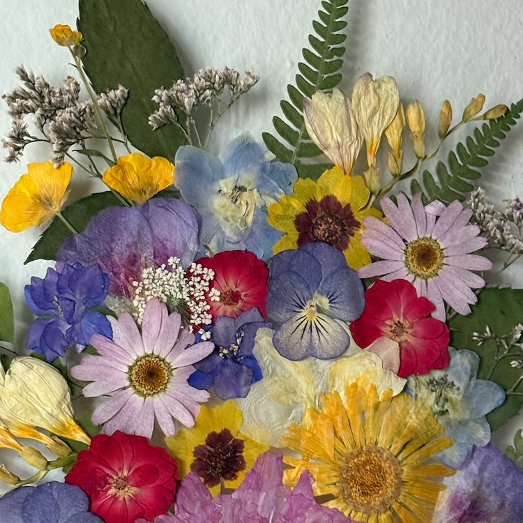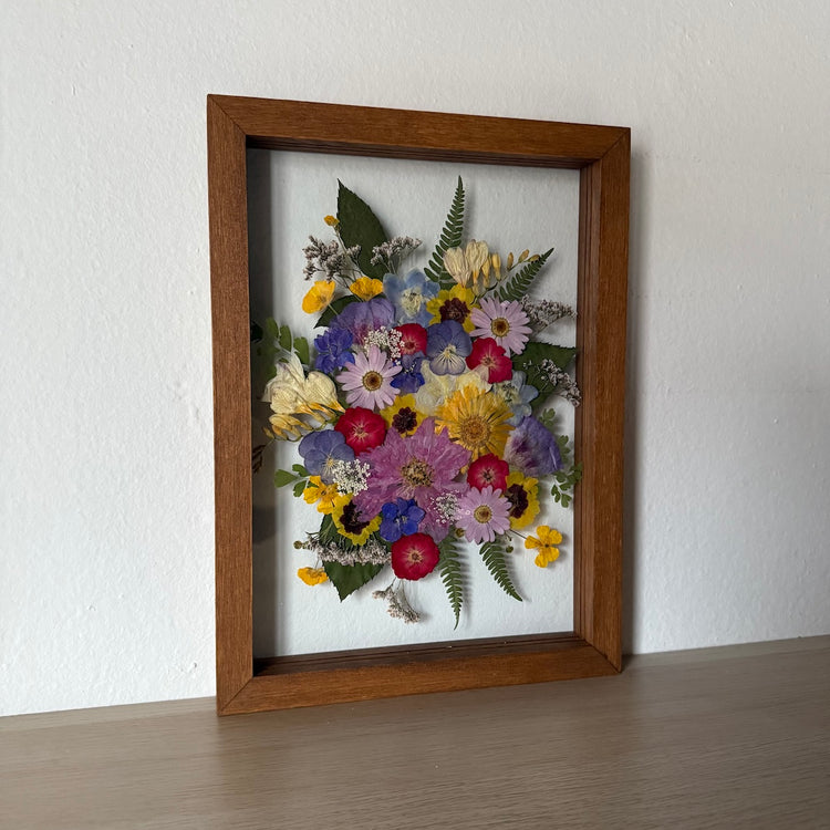 Přesně to jsou naše obrazy. Zakládáme si na originalitě a kvalitě, proto je každý náš obraz originál z pravých vylisovaných lokálních květů zarámovaných do ručně dělaných masivních dřevěných rámů.