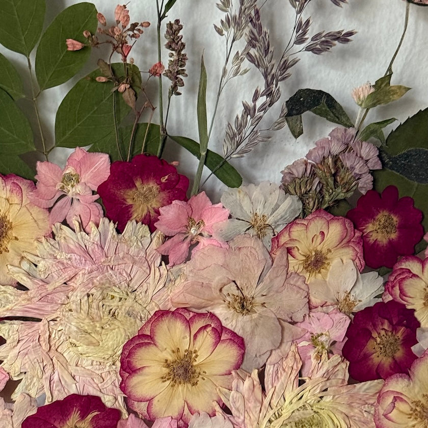 Přesně to jsou naše obrazy. Zakládáme si na originalitě a kvalitě, proto je každý náš obraz originál z pravých vylisovaných lokálních květů zarámovaných do ručně dělaných masivních dřevěných rámů.