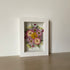 Květinový ručně vyrobený obraz s květy růžových a žlutých barev, které rostou ze středu obrazu. Mezi květy najdete krásenky, růže a další.