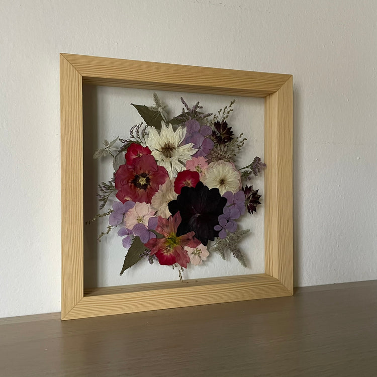 Přesně to jsou naše obrazy. Zakládáme si na originalitě a kvalitě, proto je každý náš obraz originál z pravých vylisovaných lokálních květů zarámovaných do ručně dělaných masivních dřevěných rámů.
