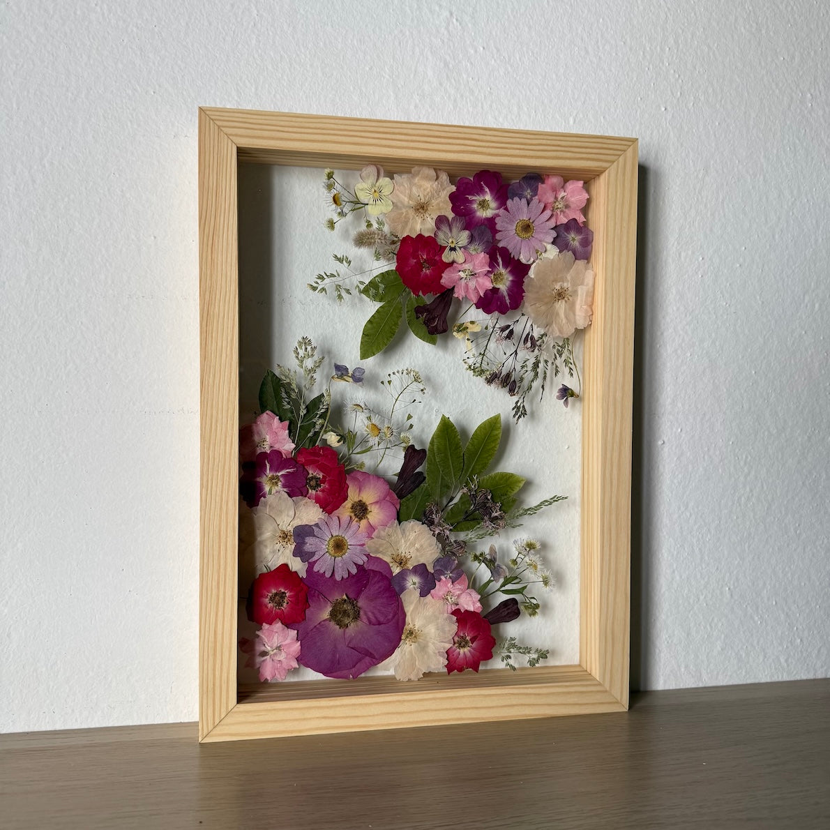 Použité květiny a rostliny jsou skutečné, ručně sbírané a šetrně lisované, aby si zachovaly svou přirozenou strukturu, jemnost i barevnost. 🌿 Následně jsou s citem aranžovány do jedinečné kompozice – každý obraz je originál, žádné dva kusy nejsou stejné.