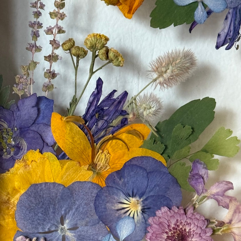 Použité květiny a rostliny jsou skutečné, ručně sbírané a šetrně lisované, aby si zachovaly svou přirozenou strukturu, jemnost i barevnost. 🌿 Následně jsou s citem aranžovány do jedinečné kompozice – každý obraz je originál, žádné dva kusy nejsou stejné.