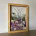 Květinový ručně vyrobený kreslený obraz s květy fialových a bílých odstínů.