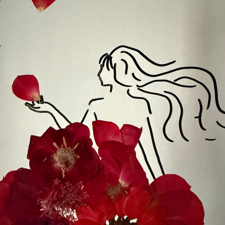 Květinový ručně vyrobený obraz s originální malovanou siluetou s květy v červených barvách.