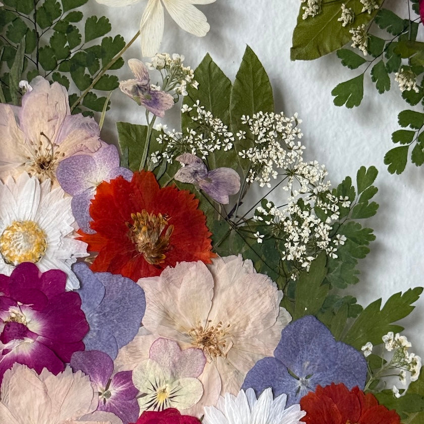 Použité květiny a rostliny jsou skutečné, ručně sbírané a šetrně lisované, aby si zachovaly svou přirozenou strukturu, jemnost i barevnost. 🌿 Následně jsou s citem aranžovány do jedinečné kompozice – každý obraz je originál, žádné dva kusy nejsou stejné.