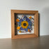 Květinový ručně vyrobený obraz s květy žlutých, modrých a bílých barviček, které rostou ze středu obrazu. Mezi květy najdete jasmín, slunečnice a mnoho dalšího.