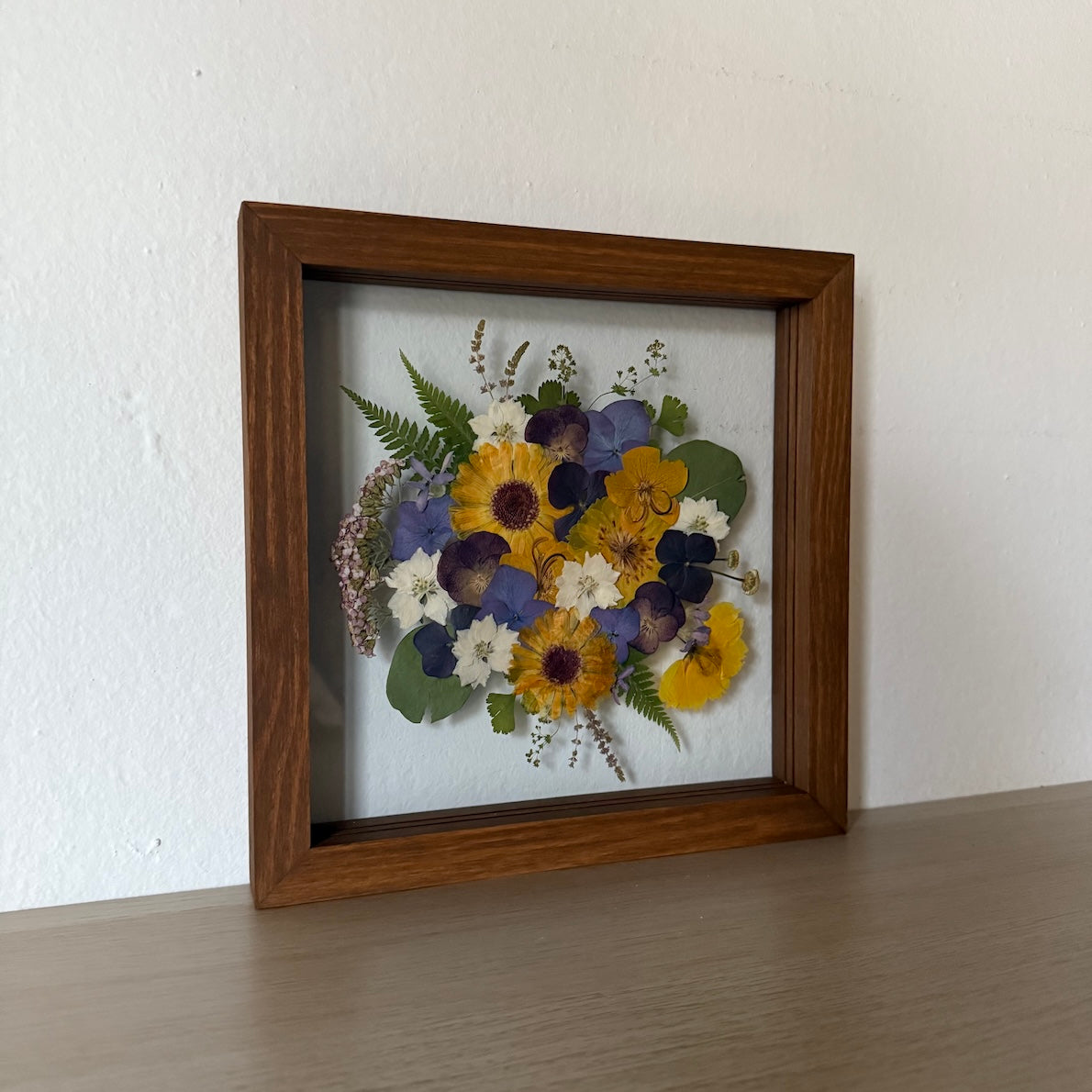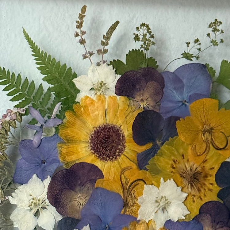 Přesně to jsou naše obrazy. Zakládáme si na originalitě a kvalitě, proto je každý náš obraz originál z pravých vylisovaných lokálních květů zarámovaných do ručně dělaných masivních dřevěných rámů.