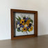 Květinový ručně vyrobený obraz s květy ve žlutých a fialových barvách, které rostou ze středu obrazu. Mezi květy najdete krásnoočka, měsíček a mnoho dalšího.