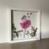 Květinový ručně vyrobený obraz s originální malovanou siluetou s květy v růžových barvách.