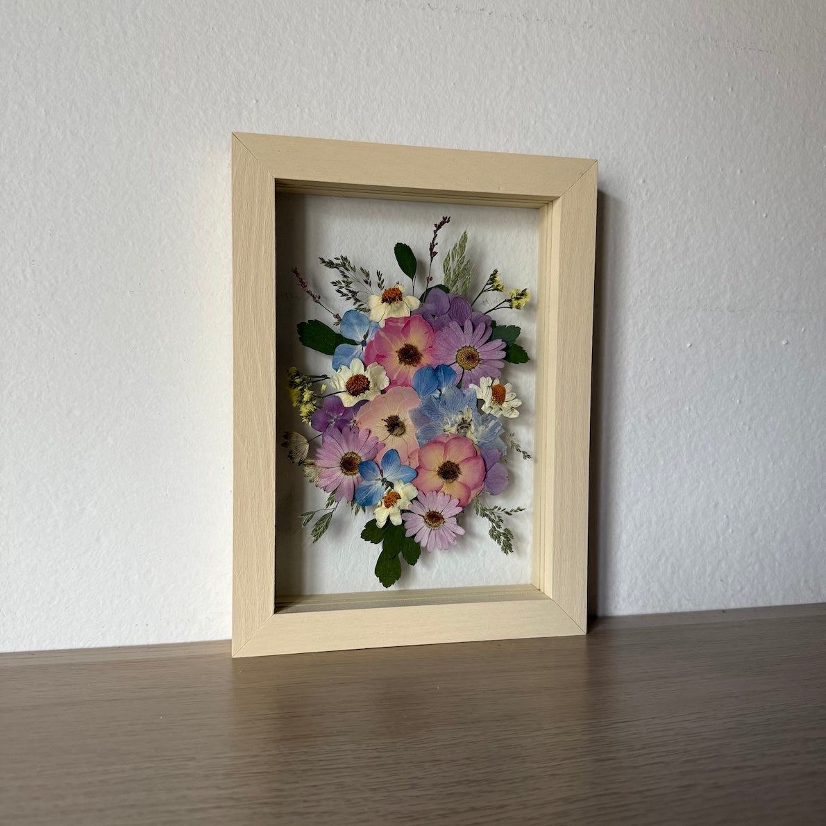 Použité květiny a rostliny jsou skutečné, ručně sbírané a šetrně lisované, aby si zachovaly svou přirozenou strukturu, jemnost i barevnost. 🌿 Následně jsou s citem aranžovány do jedinečné kompozice – každý obraz je originál, žádné dva kusy nejsou stejné.