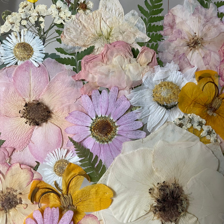 Použité květiny a rostliny jsou skutečné, ručně sbírané a šetrně lisované, aby si zachovaly svou přirozenou strukturu, jemnost i barevnost. 🌿 Následně jsou s citem aranžovány do jedinečné kompozice – každý obraz je originál, žádné dva kusy nejsou stejné.