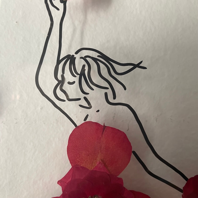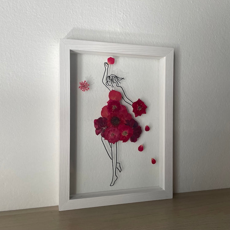Květinový ručně vyrobený obraz s originální malovanou siluetou s květy v červených barvách.