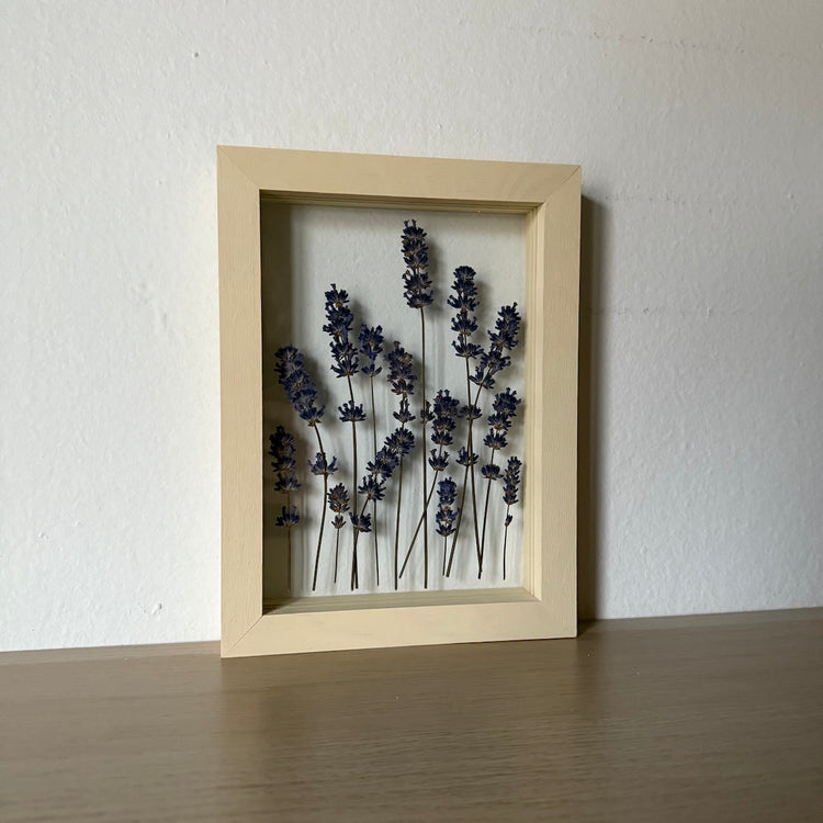 Květiny jsou zasazeny mezi skla a doplněny ručně vyráběným dřevěným rámem, který vzniká přímo v naší dílně. 🪵